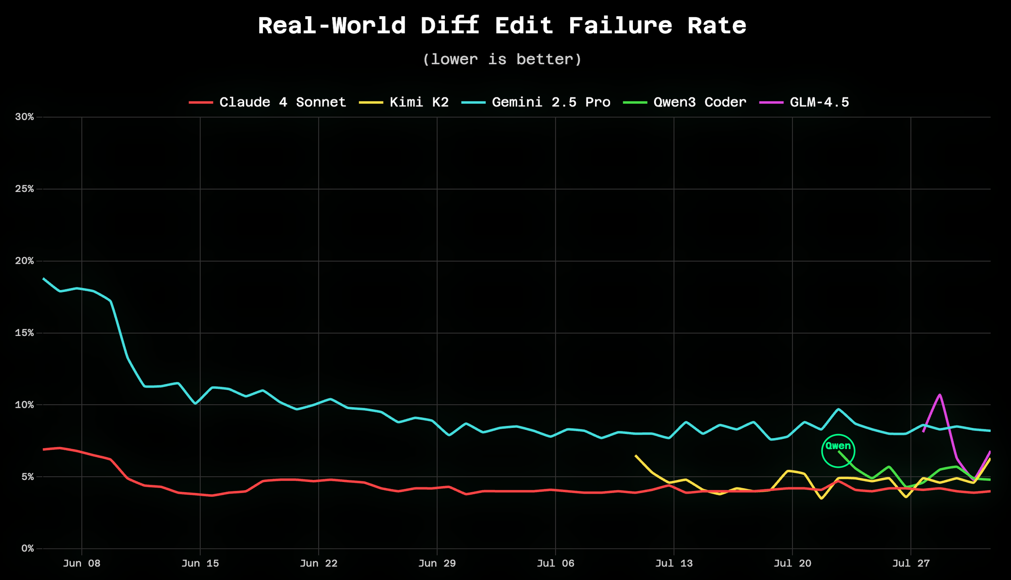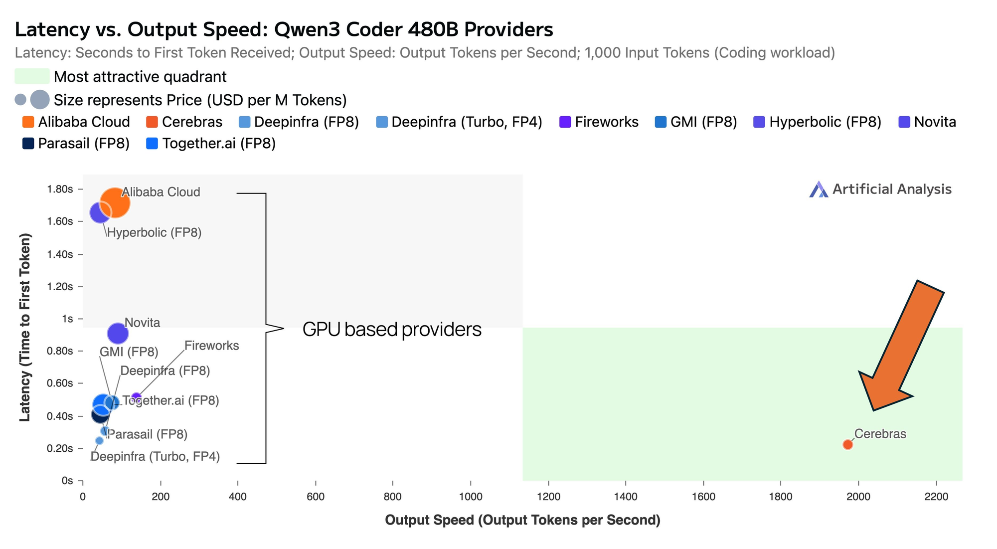 Fast inference with mediocre models is pointless. That's why we're excited about Qwen3 Coder – it's competitive with Claude Sonnet and beats GPT-4.1 on SWE-bench while running at 2,000 tokens/second on Cerebras.