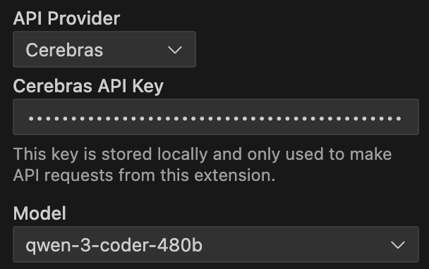 - Select Cerebras in Cline's provider dropdown & select qwen-3-coder-480b (use the free version if you're not on a paid plan).