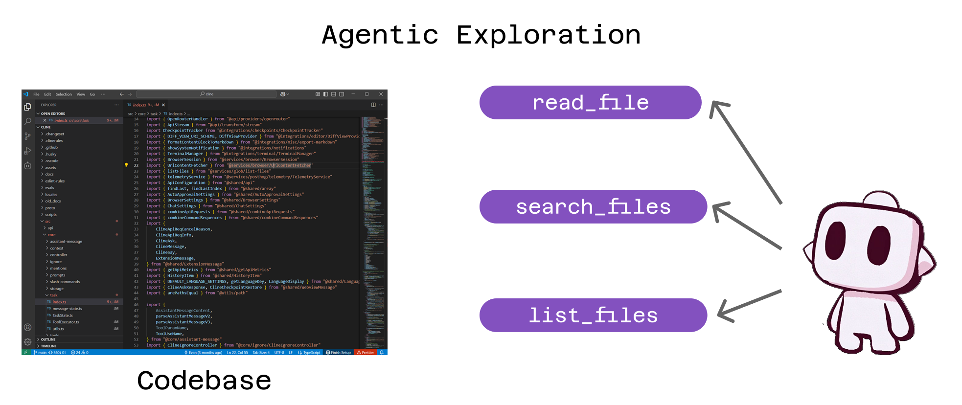 Agentic exploration represents a fundamental shift from traditional programming assistance. Instead of requiring you to provide all the necessary context upfront, Cline autonomously explores your codebase to gather the information it needs.